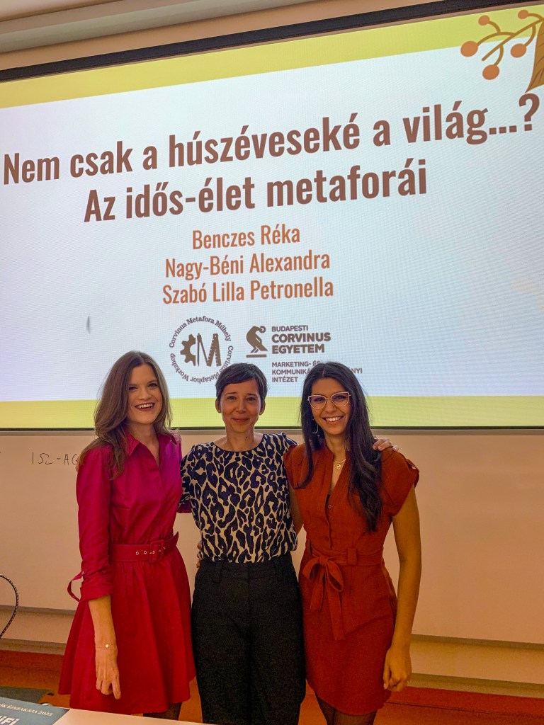 These were some of the questions Réka Benczes, Lilla Petronella Szabó, and Alexandra Nagy-Béni, answered in their talk organized as part of the Researchers’ Night at Corvinus University of Budapest. The presentation revolved around two topics: how Hungarians see old age and how older adults in Hungary conceptualize their life. The way Hungarians think about older years was explored along linguistic and visual dimensions in the names and logos of aged care facilities, while senior citizens’ perspective on life was discussed on the basis of a representative survey on the concept of life in Hungary.